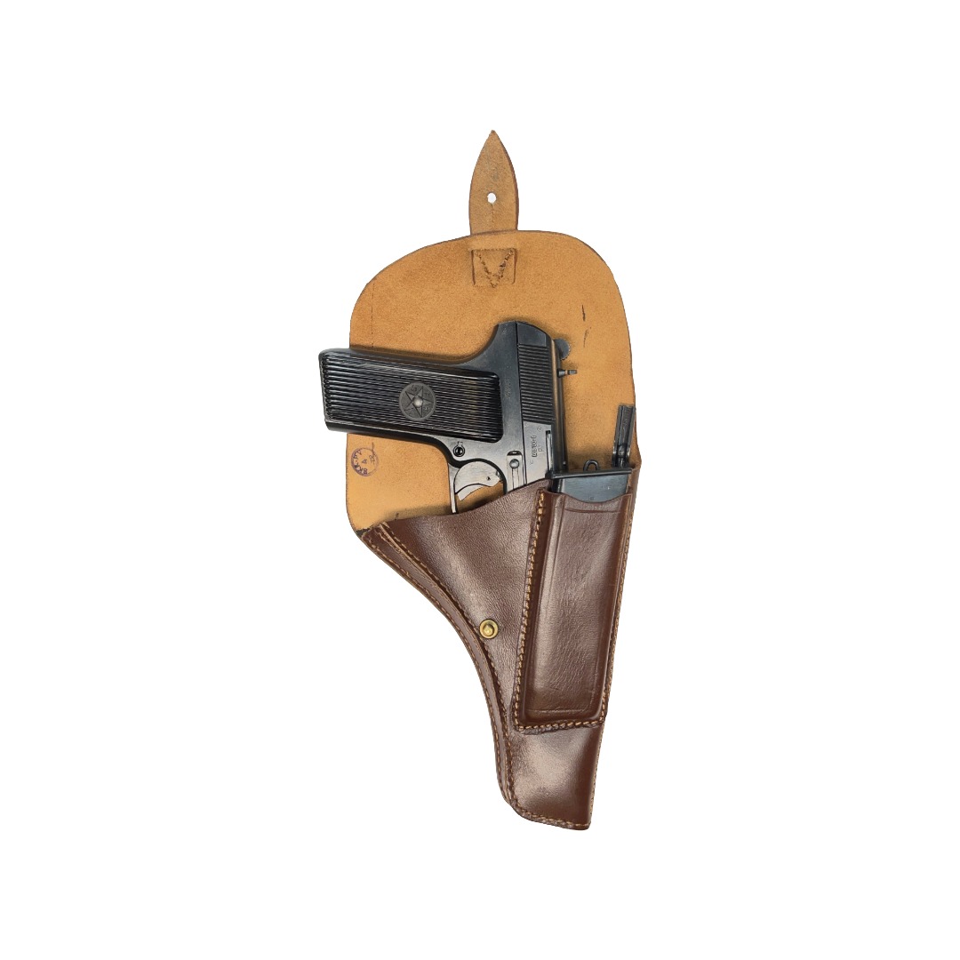 These Yugo M57 handguns are original stock acquired from Serbian law enforcement and are refurbished by the Zastava Oruzje factory. Chambered in 7.62×25, they come with two (2) authentic 9rd lanyard magazines and are compatible with M57A magazines. The handguns have original factory markings, including Yugoslavian (SFRJ) crest on the slide, and are blued by the factory. Includes an original leather holster and cleaning rod. Perfect for the collector or the everyday shooter!